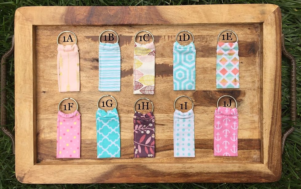 ![]() Our scrunchies are gentle on your hair and add a pop of color to any hairstyle! | ![]() Our Lip Balm Holder easily attaches to your key ring so you can take your Lip Balm anywhere! | ![]() You can contact us through Facebook, Instagram, and Email. |